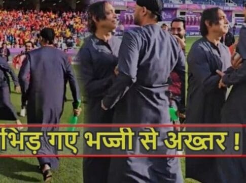 इसमें आईएलटी 20 मैच के फाइनल के दौरान दोनों एक दूसरे से टकराते नजर आए हालांकि ये सच नहीं बल्कि एक मजाकिया वीडियो है। इस वीडिया में हरभजन बल्ला लेकर आगे बढ़ते हैं। वहीं शोएब उनको पीछे धक्का दे रहे हैं। हरभजन बल्ला लेकर अख्तर की तरफ बढ़े तो उन्होंने गेंद दिखाकर उनको जवाब दिया। वहीं जब हरभजन उनके पास पहुंचे तो सीने से सीना टकराते हुए उनको पीछे की तरफ धक्का दिया।
