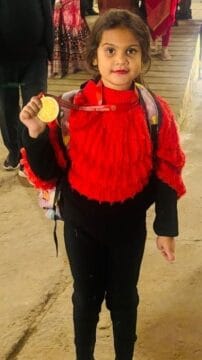 इस प्रतियोगिता में सिंघानिया एजूकेशन इंस्टीट्यूट की क्लास फर्स्ट की छात्रा आर्या शुक्ला ने शानदार प्रदर्शन करते हुए गोल्ड मेडल पर कब्जा जमाया।