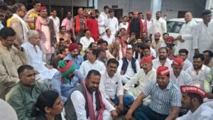 PARPANCH NEWS: Kanpur दर्शनपुरवा में सपा प्रत्याशी नसीम सोलंकी को रास्ता बताने वाले व्यक्ति को शांति भंग में बंद किए जाने से गुस्साए सपा विधायक अमिताभ बाजपेई ने समर्थकों के साथ थाने के बाहर धरना दिया ।चार घंटे तक चले धरने के उच्च अधिकारियों द्वारा मामले की जांच दूसरे सर्किल के डीसीपी से कराए जाने का आश्वासन दिया जिसके बाद धरना समाप्त हुआ।