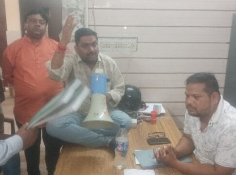 Kanpur : जोनल कार्यालय में मार्ग प्रकाश के जेई की मेज पर बैठकर पार्षदो ने दिया धरना