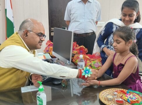 Kanpur ।रक्षा बंधन से पूर्व जिलाधिकारी शिविर कार्यालय उस समय भावनाओं और उल्लास से भर उठा, जब नवाबगंज स्थित पुष्पा खन्ना मेमोरियल सेंटर के विशेष बच्चे जिलाधिकारी जितेन्द्र प्रताप सिंह को राखी बाँधने पहुँचे। बच्चों की निश्छल मुस्कान और चुलबुली बातों ने पूरे वातावरण को आत्मीय बना दिया।