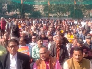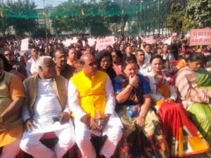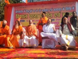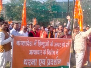 Kanpur: बांग्लादेश में हिंदुओं पर हो रहे अत्याचार के विरोध में सोमवार को बांग्लादेश हिन्दू रक्षा समिति के आह्वान पर जी एन के कालेज परिसर में विशाल धरना दिया गया।