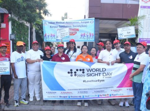 Kanpur ।इंडियन मेडिकल एसोसिएशन ने ऑप्थाल्मिक सोसाइटी के सहयोग से विश्व दृष्टि दिवस पर एक जागरूकता वॉकथॉन का सफल आयोजन किया गया। इस वर्ष की थीम “अपनी आंखों का ध्यान रखें, क्योंकि दृष्टि ही जीवन का प्रकाश है।”आमजन को नेत्र सुरक्षा और नियमित नेत्र जांच के महत्व के प्रति जागरूक करने के उद्देश्य से आयोजित किया गया।