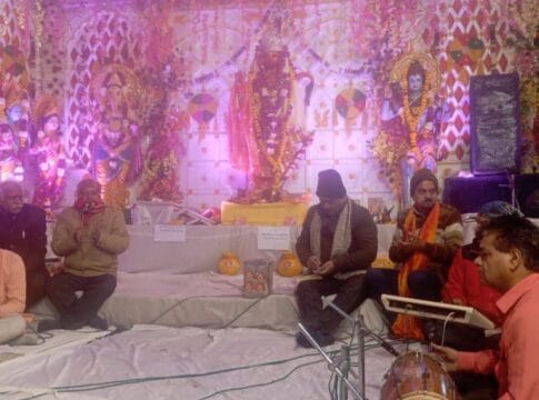 Kanpur ।रामबाग सीसामऊ युवा एकता समिति के द्वारा आयोजित 18 वा हनुमानोत्सव में आज दिनांक 06 जनवरी 2025 को अखंड रामायण के पाठ का समापन पर संगीतमय राजगद्दी का आयोजन किया गया।बालाजी सत्संग मंडल शास्त्री नगर के द्वारा राजगद्दी में बाबा के भजन प्रस्तुत किए गए जिससे पूरा पंडाल झूम उठा।