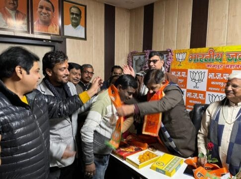 Kanpur । भारतीय जनता पार्टी उत्तर कार्यालय में जिला अध्यक्ष दीपू पांडे ने नव निर्वाचित मंडल अध्यक्षों व जिला प्रतिनिधियों का तिलक कर के लड्डू खिला कर पटका पहना कर स्वागत किया।पूर्व जिला अध्यक्ष विनोद शुक्ला ने पुष्प गुच्छ देकर अभिनन्दन किया।स्वागत सभा को संबोधित करते हुए दीपू पांडे ने कहा कि आज आप के मस्तक पर जो तिलक किया है ये आने वाले 2027 के चुनावों के लिए आप सभी का विजय तिलक किया गया।