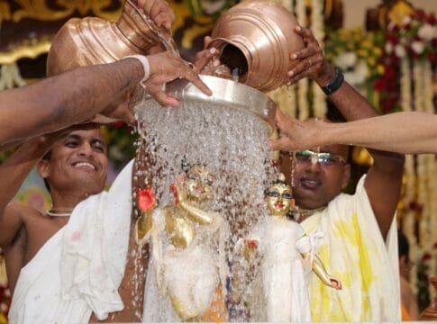 श्रीमती राधा रानी की किसी सामान्य स्त्री से तुलना नहीं की जा सकती। वैष्णव आचार्यों द्वारा रचित सुंदर स्तुतियों के साथ 10:30 बजे श्री श्री राधा माधव का सुंदर 108 चांदी के कलशों द्वारा दिव्य अभिषेक संपन्न हुआ। राधे जय जय माधव दयिते, राधा रानी की जय महारानी की जय इत्यादि वैष्णव गीतों से मंदिर प्रांगण राधा रानी की भक्ति में संगीतमय हो उठा। हरे कृष्ण महामंत्र के मधुर कीर्तन द्वारा श्रीमती राधा रानी से प्रार्थनाएं की गई। भक्तों को कृष्ण प्रसाद भी वितरित किया गया।