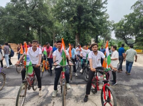Kanpur ।चंद्रशेखर आजाद कृषि एवं प्रौद्योगिक विश्वविद्यालय कानपुर में स्वतंत्रता दिवस के मौके पर हर घर तिरंगा अभियान के तहत तिरंगा साइकिल रैली निकाली गई। रैली में अधिकारियों के साथ-साथ छात्रों ने बढ़चढ़ कर हिस्सा लेते हुए देश भक्ति का संदेश दिया और लोगों में देश भक्ति की भावना जागृत की।