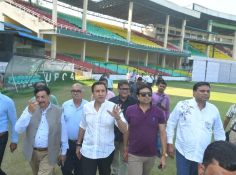निरीक्षण किया। निरीक्षण के दौरान उन्होंने मैदान की पिच, आउटफील्ड, प्रैक्टिस विकेट,गैलरी, मीडिया बॉक्स और खिलाड़ियों के ड्रेसिंग रूम का जायज़ा लिया।