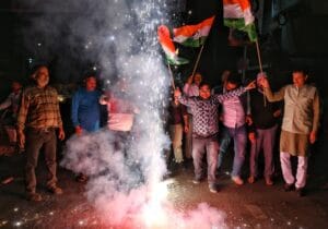 Kanpur । विराट कोहली के नाबाद शतक और कानपुर के चाइनामैन कुलदीप यादव की शानदार गेंदबाजी पर भारत ने रविवार को दुबई में चैम्पियंस ट्रॉफी में मेजबान पाकिस्तान को धूल चटाकर वर्ष २०१७ में मिली हार का बदला भी चुकता किया। टीम इंडिया की इस धमाकेदार जीत का जश्न पूरे शहर में देर रात को दिखायी दिया। जगह-जगह आतिशबाजी और ढोल-नगाड़ों का शोर सुनायी पड़ा। युवाओं की टोलियां तिरंगा हाथों में लिए जीत का जश्न मनाती दिखी।