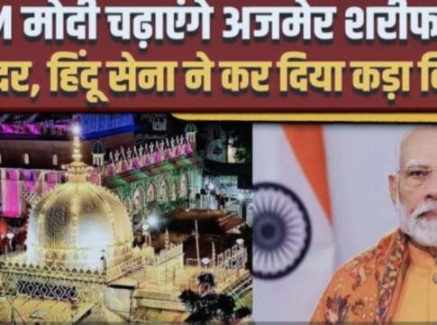 New Delhi। प्रधानमंत्री नरेंद्र मोदी इस बार 11वीं बार अजमेर शरीफ दरगाह पर चादर चढ़ाएंगे। उनकी ओर से केंद्रीय मंत्री किरेन रिजिजू 4 जनवरी को ख्वाजा मोइनुद्दीन चिश्ती की दरगाह पर चादर चढ़ाएंगे। इस बीच हिंदू सेना ने प्रधानमंत्री मोदी की ओर से अजमेर शरीफ में चादर चढ़ाने का विरोध किया है। ये दरगाह असल में संकट मोचन महादेव मंदिर है।