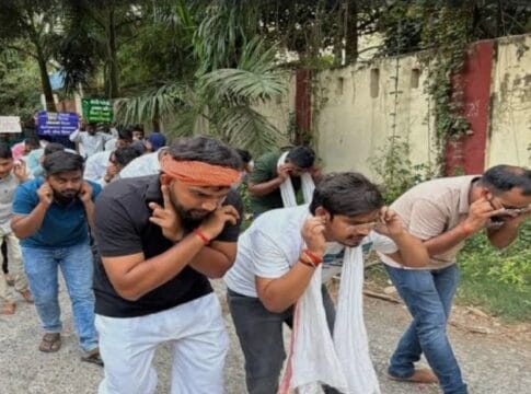 Prayagraj। प्रयागराज में डीएलएड अभ्यर्थियों ने अनोखा प्रदर्शन किया। उन्होंने कान पकड़ मुर्गा बनकर, जुलूस निकाला। सीएम योगी से माफी मांगते हुए ऐसा प्रदर्शन कर कहा कि हमसे गलती हो गई जो मास्टर बनने के लिए डीएलएड का प्रशिक्षण लिया। अगर डीएलएड नहीं किया होता तो दर-दर की ठोकरें नहीं खाते।