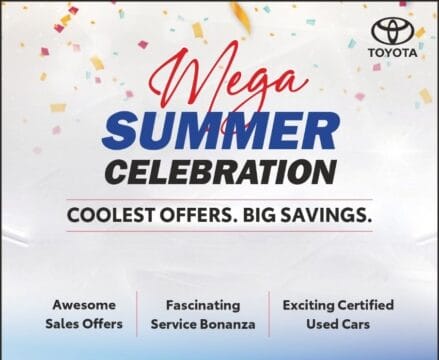 UP । बिक्री, सर्विस, पुरानी कार, एक्सेसरीज़ और अन्य पर आकर्षक ऑफ़र! इस मौसम में अपने ‘मेगा समर सेलिब्रेशन’की शुरुआत करके टोयोटा गर्मी बढ़ा रही है। यह उत्तर भारत में सभी अधिकृत टोयोटा डीलरशिप पर एक पहल है।