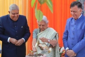 सबसे अहले समारोह की शुरुआत मुख्य अतिथि जगदीप धनखड़ द्वारा “एक पेड़ मां के नाम” अभियान के तहत पौधारोपण के साथ हुई।